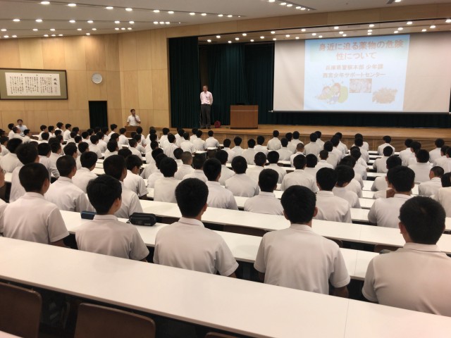7月10日(水)4限目に大谷記念講堂にて、薬物乱用防止講習会を実施しました。西宮少年サポートセンターの坂本様を講師にお招きし、薬物乱用の危険性について話をしていただきました。